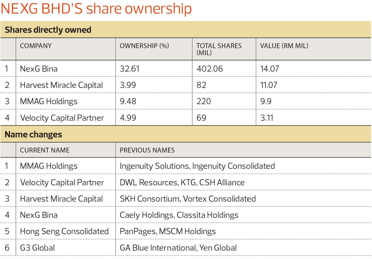 Kembali ke NexG, sebelum perjanjian Classita, Chan juga telah menjual 7.58% pegangan dalam MMAG kepada NexG pada Mac tahun lepas. Beliau juga melupuskan 6.5% pegangan MMAG kepada Velocity Capital dan, kemudiannya, tidak lagi menjadi pemegang saham besar dan pengarah ganti MMAG. November lalu, Chin meletak jawatan sebagai pengarah eksekutif MMAG dan Ingenieur Gudang Bhd (KL:INGENIEU).